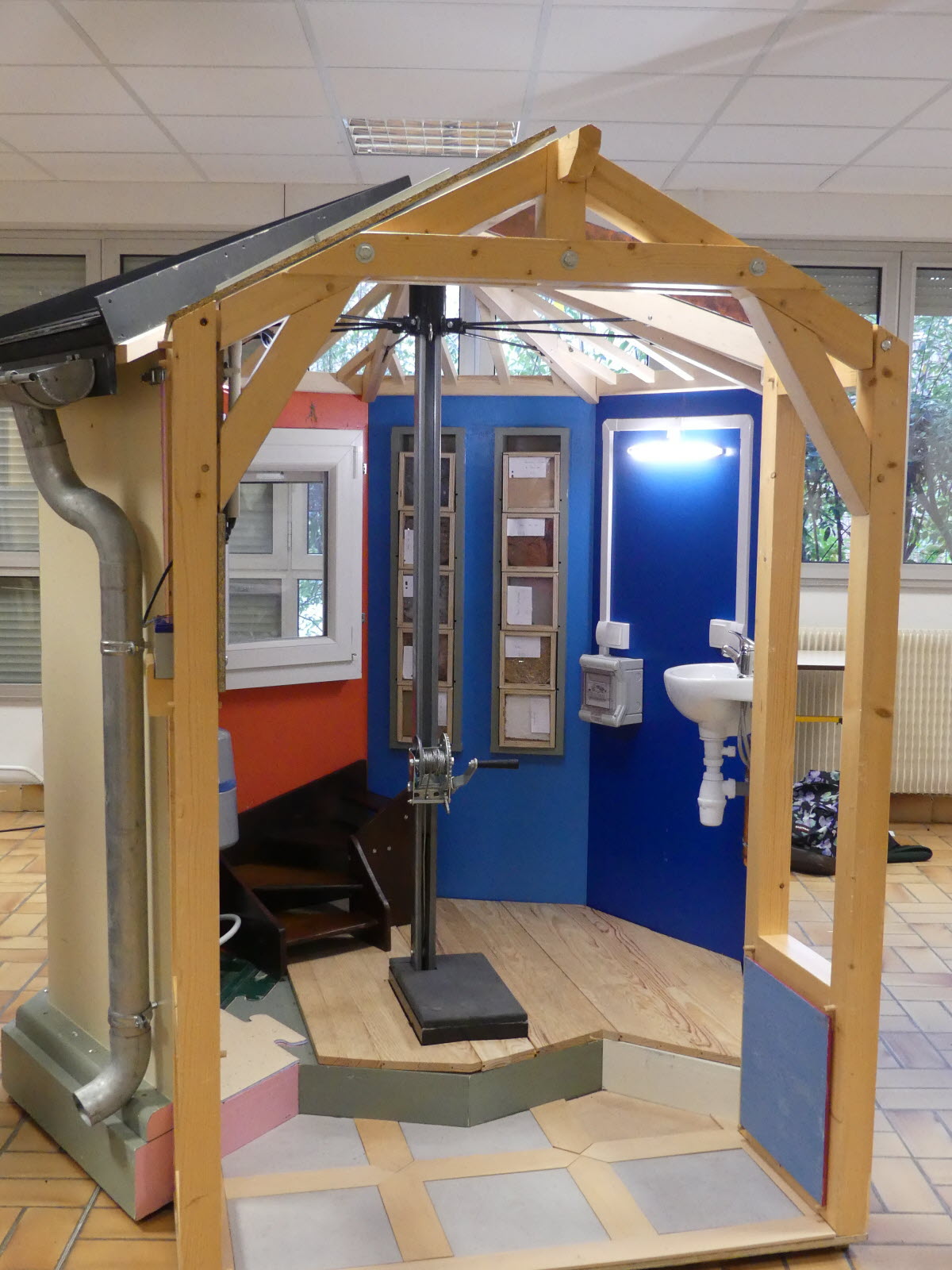 Présentation/échange sur les métiers du BTP le matin, repas offert par la ML pris en commun, construction d'une maquette grandeur nature ou presque l'après-midi, pour permettre de "manipuler", que ce soit sur le panneau électrique, la plomberie, l'isolation, etc.