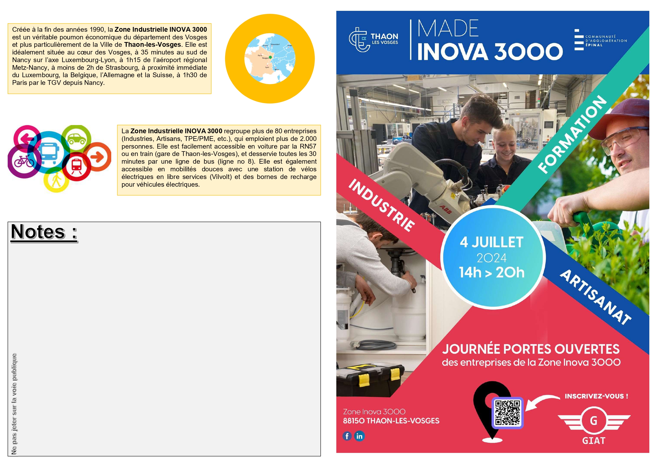Cette journée se déroulera le jeudi 4 juillet prochain de 14h à 20h et verra plus de 20 entreprises de la Zone Inova 3000 de Thaon-les-Vosges ouvrir leurs portes pour présenter leurs savoir-faire.